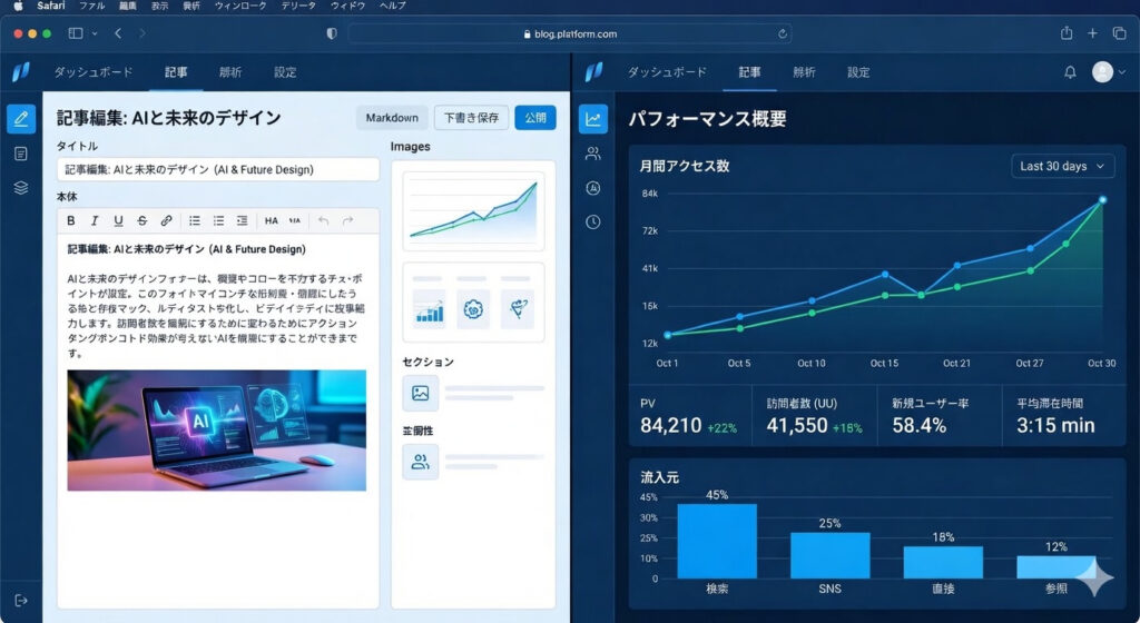 - 6ヶ月目:成果の確認と拡大:アクセスデータを分析し、成果が出ている記事パターンを横展開する