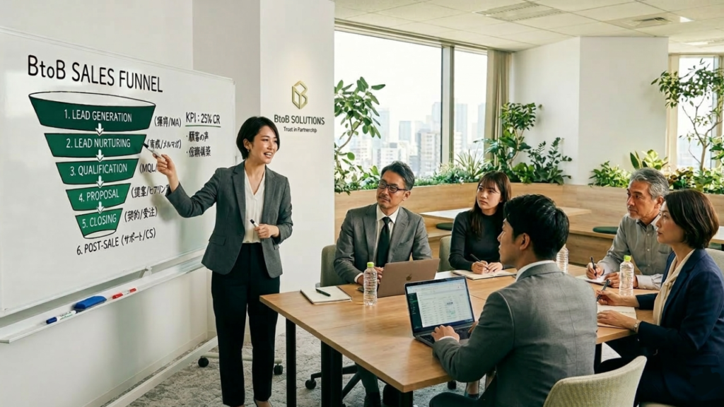 BtoB商材は検討期間が長く、意思決定者が複数いるため、BtoCのように衝動的な購買行動が起きにくいのが特徴です。だからこそ、見込み顧客(リード)を計画的に獲得し、育成する仕組みが必要です。
